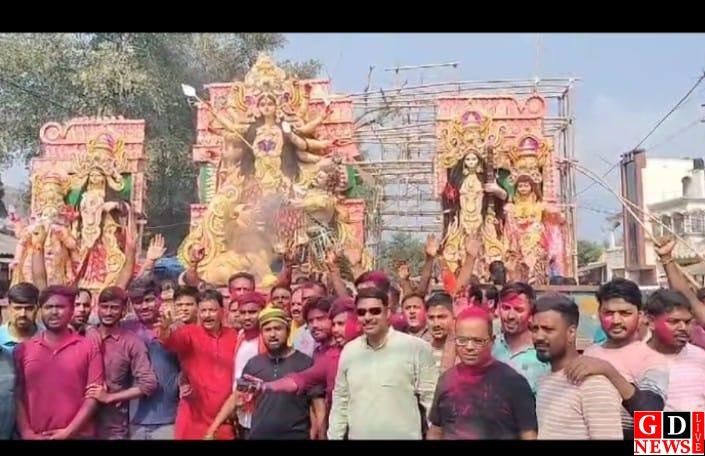 नम आंखों से की गई मां दुर्गा की प्रतिमा का भव्य विसर्जन।
