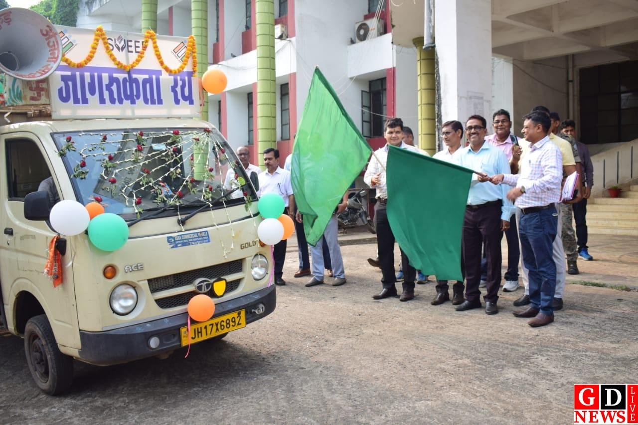 जिला निर्वाचन पदाधिकारी ने स्वीप मतदाता जागरूकता वैन को हरी झंडी दिखाकर किया रवाना।