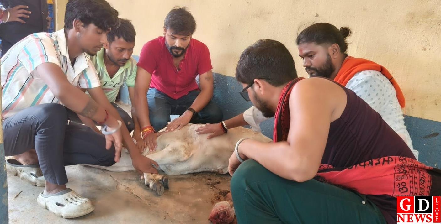 राजकुमार भगत पाकुड़: गौ रक्षक में हमेशा से तत्पर स्थानीय सनातनियो ने शनिवार को रेलवे स्टेशन के निकट घायल एक गौ पशु कि इलाज कर