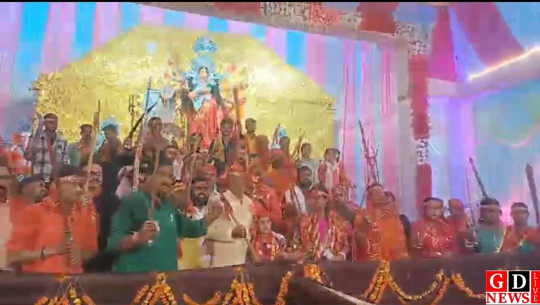 बजरंग पंडित पाकुड़ रेलवे परिसर स्थित दुर्गा पूजा के पंडाल में स्थापित दुर्गा माता प्रतिमा के समीप विजयादशमी के शुभ अवसर पर युवाओं व मातृशक्तियों