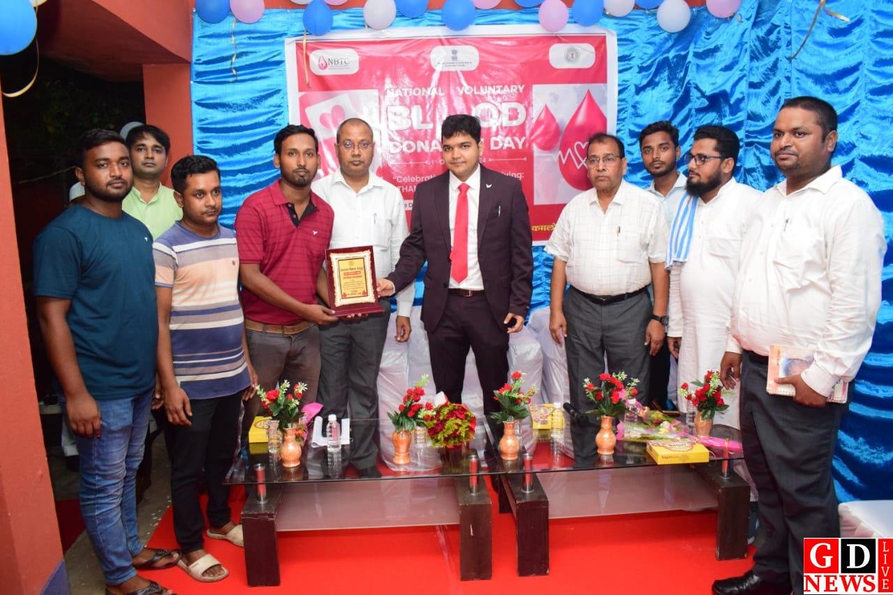 राष्ट्रीय स्वैच्छिक रक्तदान दिवस पर पाकुड़ में सम्मान समारोह आयोजित।