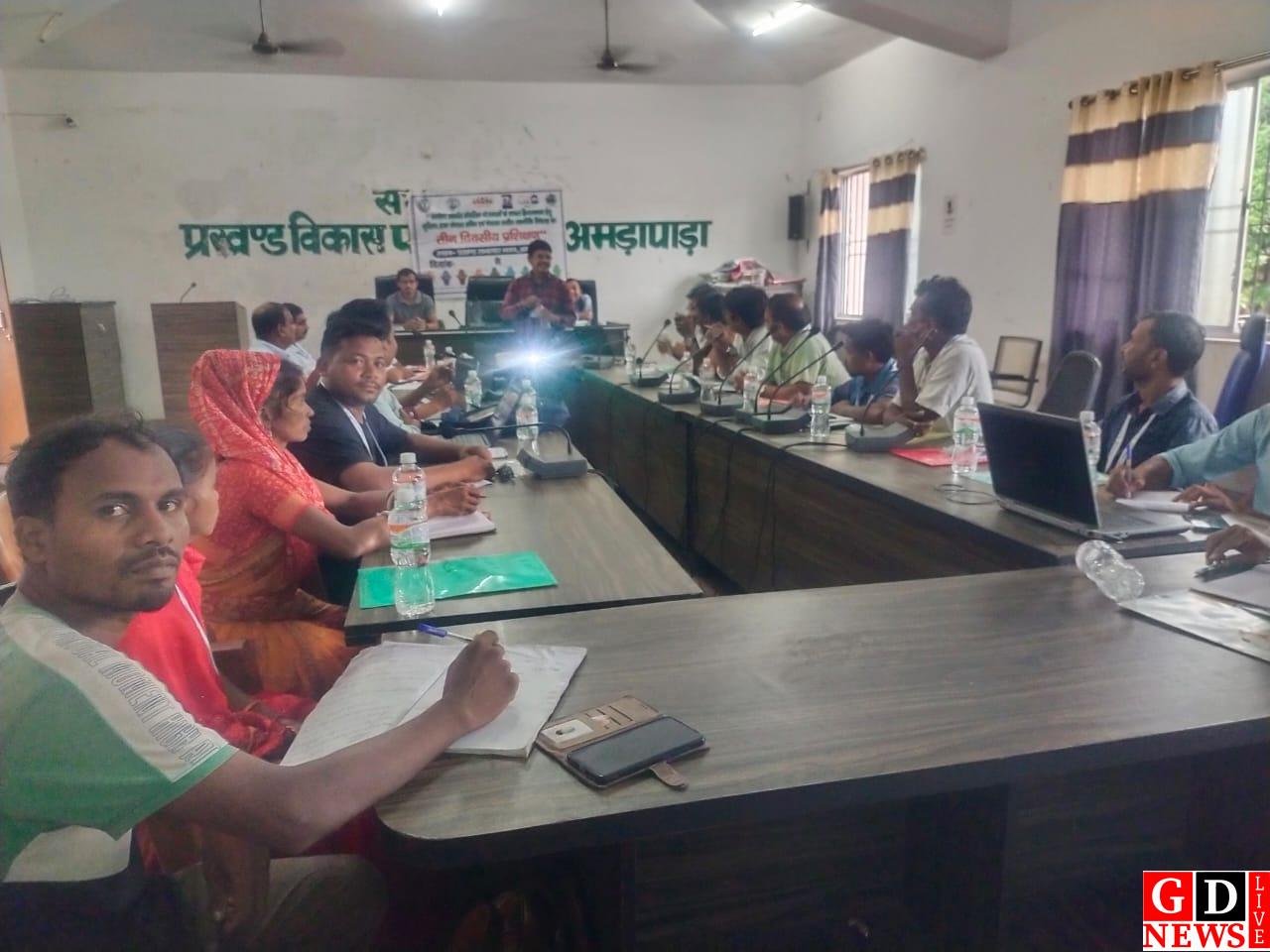 अमर भगत अमड़ापाड़ा प्रखंड परिसर में मनरेगा अंतर्गत संचालित योजनाओं के क्रियान्वयन हेतु पंचायत सचिव, मुखिया को एई सुनील कुमार, जेई सोहेल शेख की अध्यक्षता