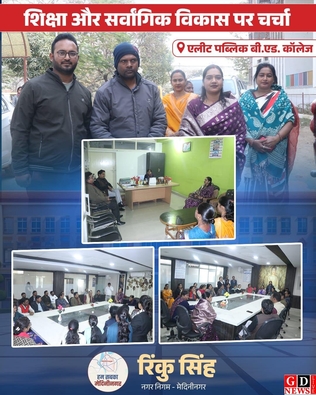 श्रीमती रिंकु सिंह जी ने आज एलीट पब्लिक बी.एड. कॉलेज में शिष्टाचार मुलाकात की : शिक्षा और विकास पर हुई चर्चा ।