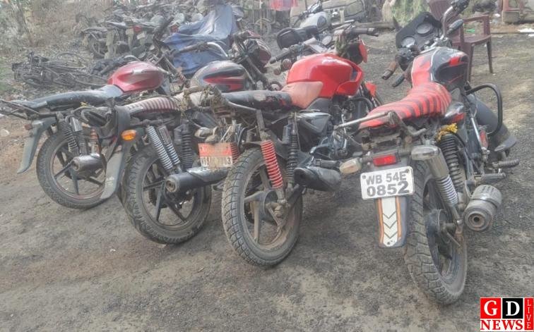 अवैध कोयला परिवहन पर कार्रवाई, चार मोटरसाइकिल जब्त।
