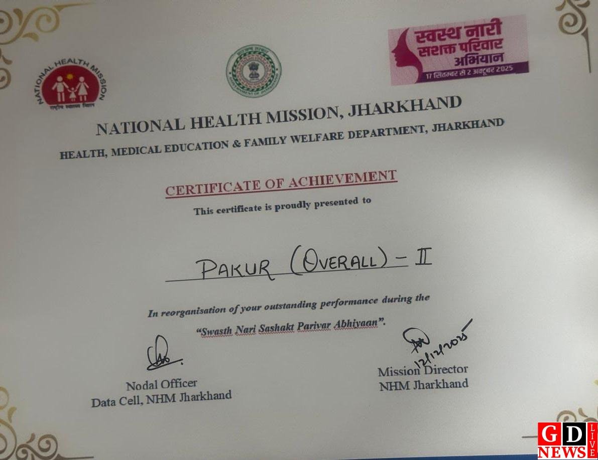 पाकुड़ जिले ने स्वास्थ्य क्षेत्र में एक और महत्वपूर्ण उपलब्धि दर्ज करते हुए राष्ट्रीय स्वास्थ्य मिशन, झारखंड द्वारा आयोजित “स्वस्थ नारी सशक्त परिवार अभियान” में