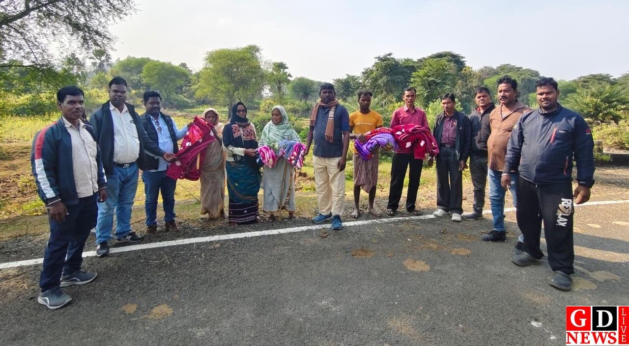 विधायक हेमलाल मुर्मू के सौजन्य से गरीबों के बीच कंबल वितरण।