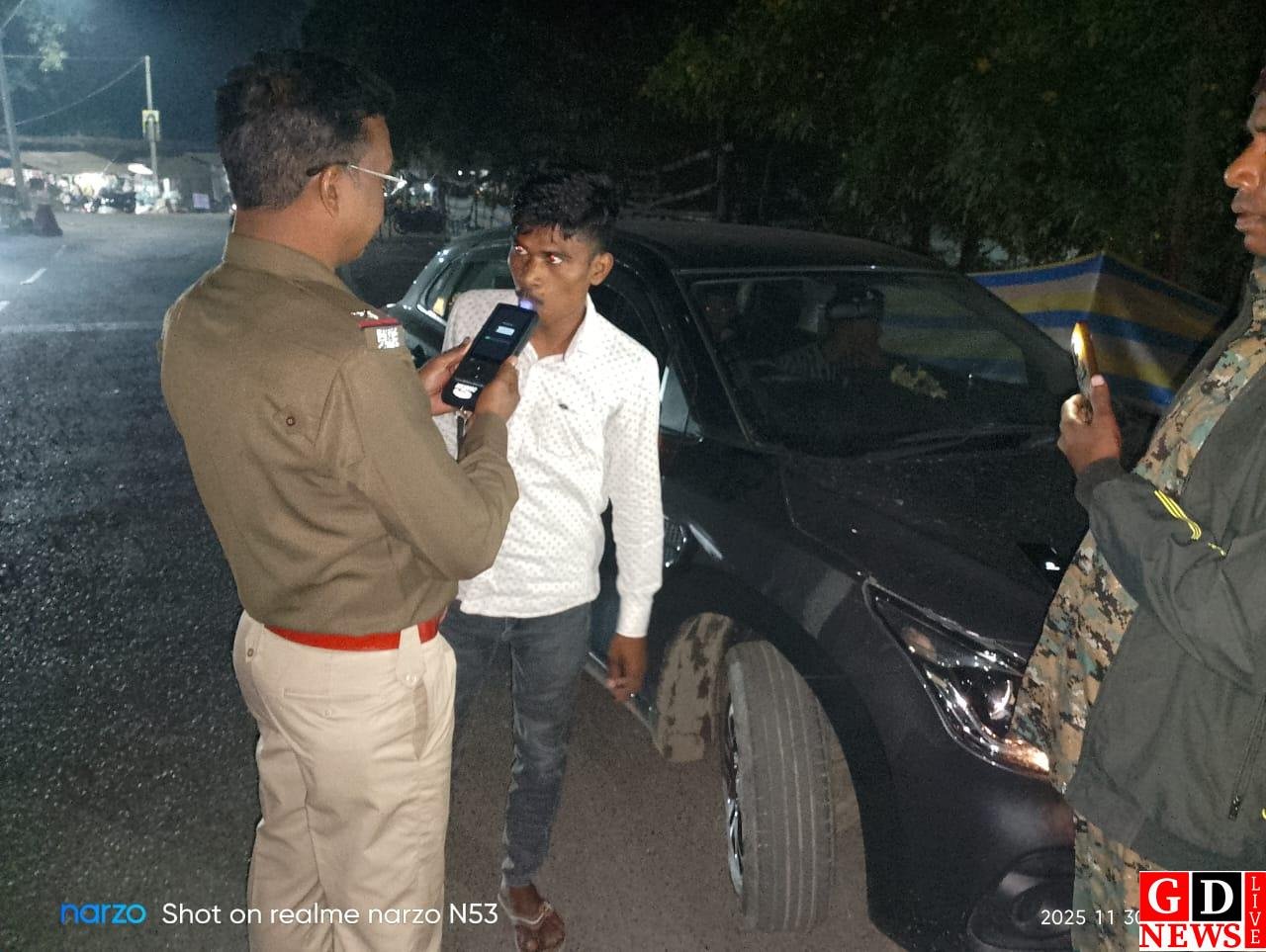 ड्रिंक एंड ड्राइव पर पुलिस की कार्रवाई, देर शाम सघन जांच अभियान, चालकों को दी सख्त चेतावनी।