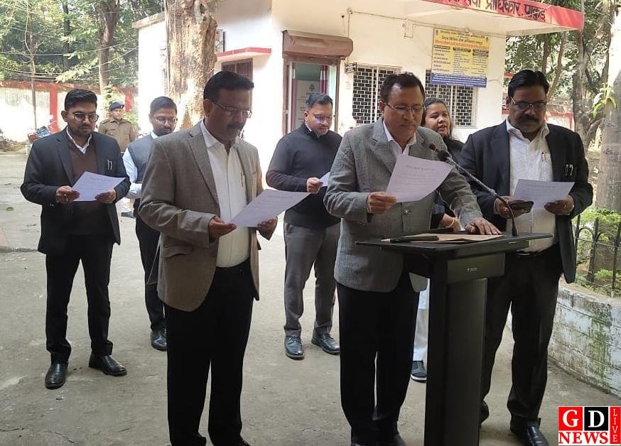बाल विवाह मुक्त भारत निर्माण को लेकर पाकुड़ न्यायालय में न्यायिक पदाधिकारियों ने ली शपथ।
