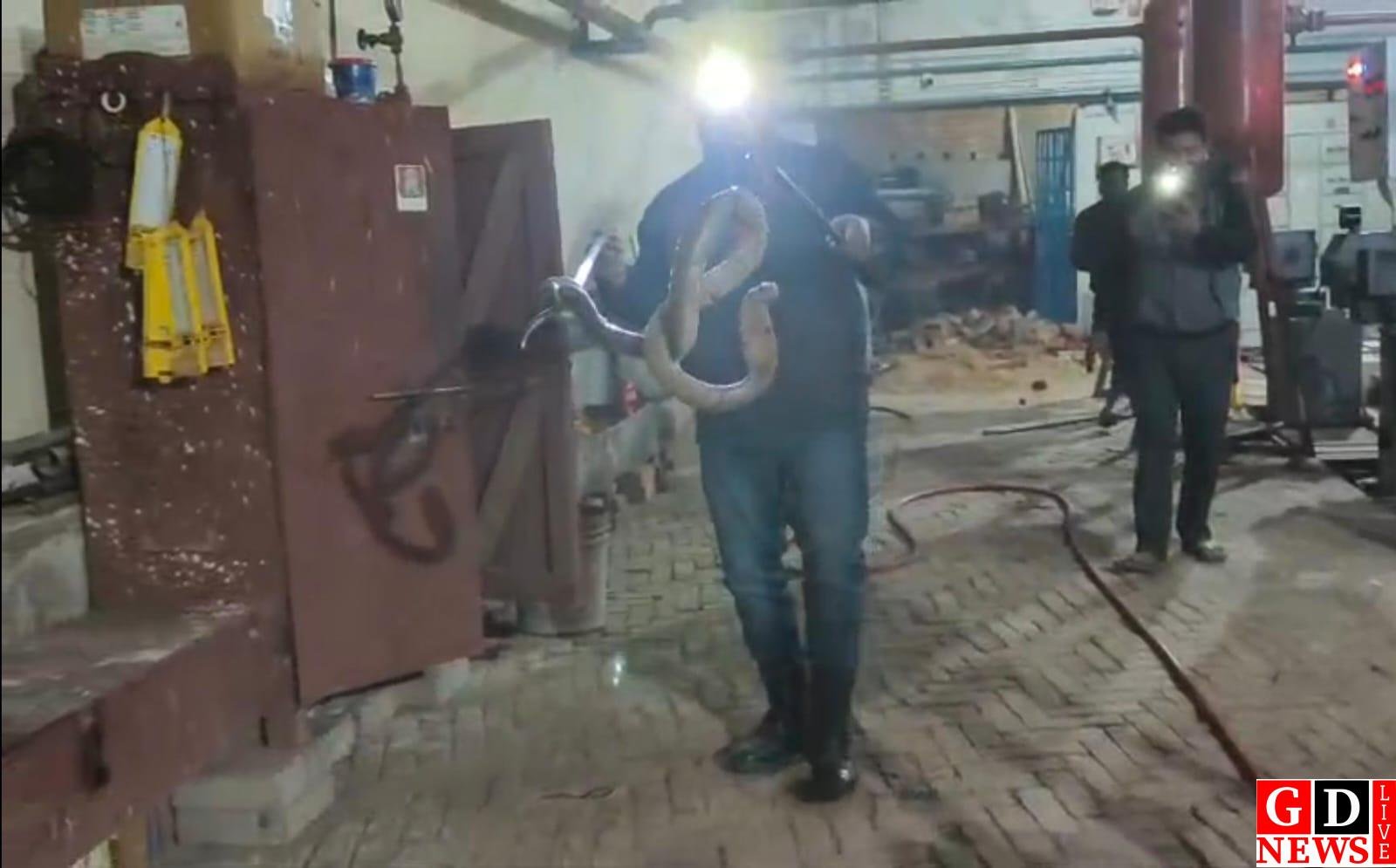 स्टोर रूम के पाइप से निकला विशालकाय कोबरा, वन विभाग ने रेस्क्यू कर जंगल में छोड़ा।