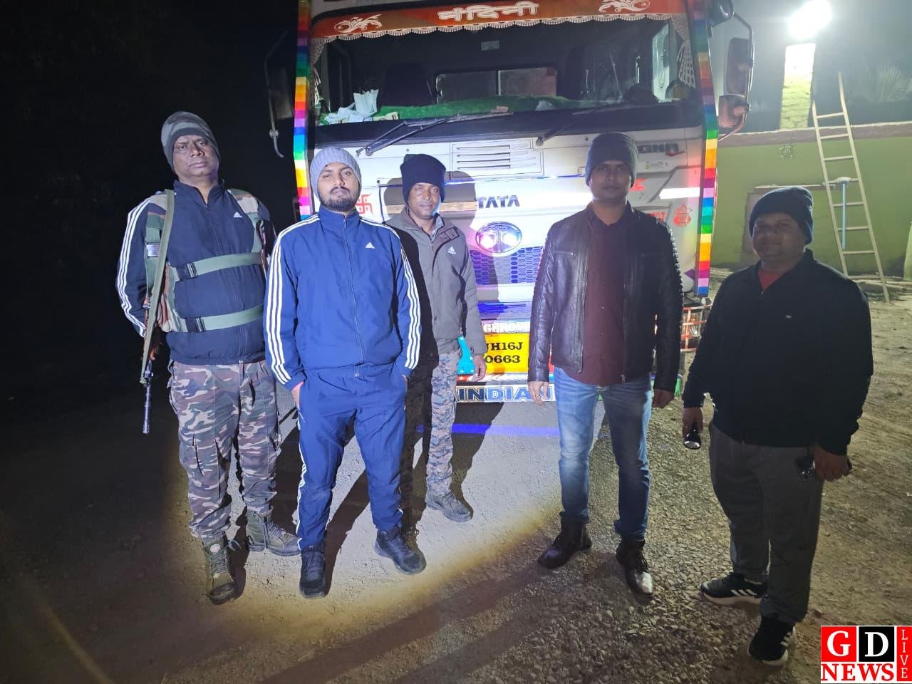 संयुक्त छापेमारी में अवैध परिवहन पर कार्रवाई, एक वाहन जप्त।