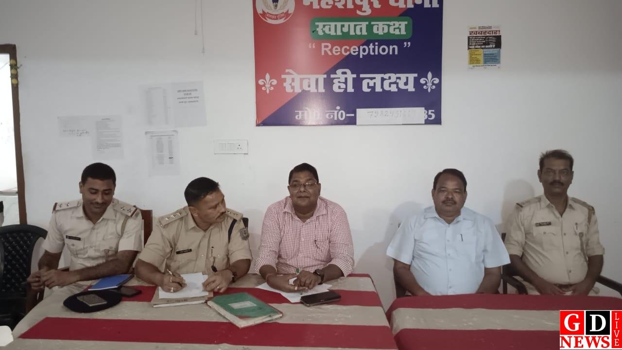 एस कुमार मुहर्रम पर्व को लेकर महेशपुर थाना परिसर में मंगलवार महेशपुर एसडीपीओ विजय कुमार की अध्यक्षता में शांति समिति की बैठक आयोजित की गई.
