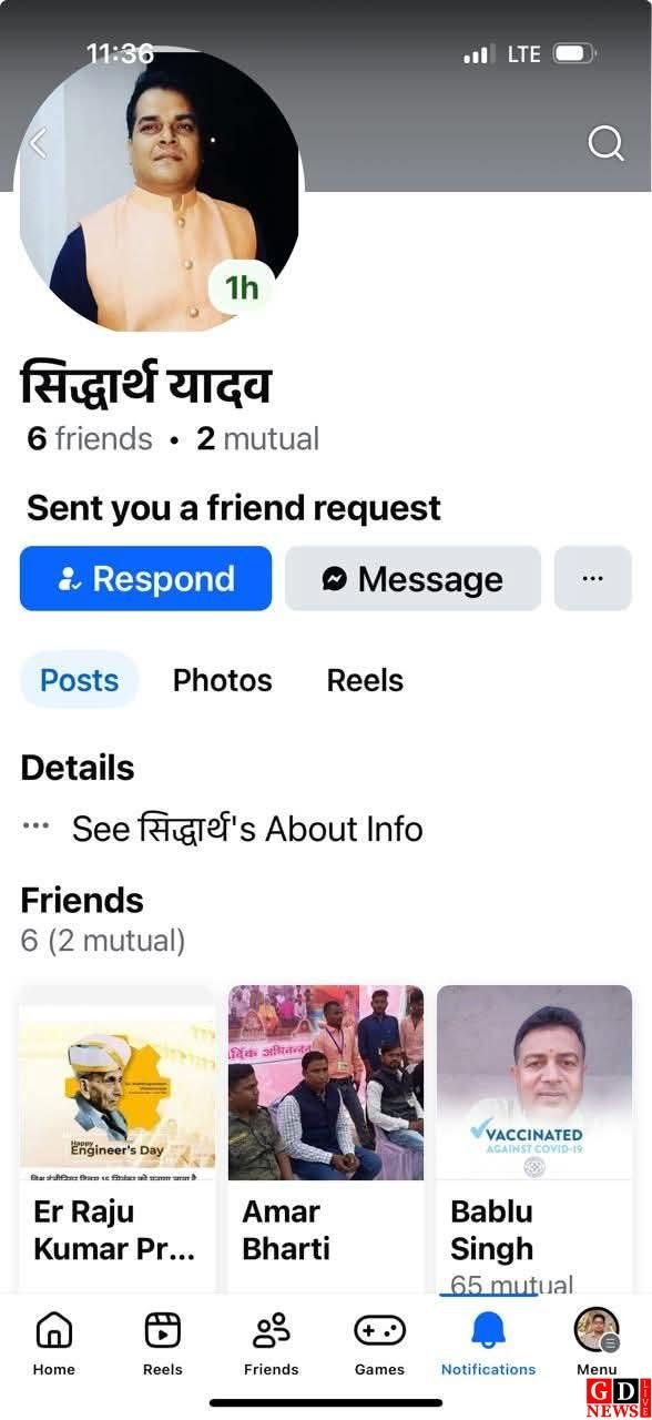 इकबाल हुसैन महेशपुर प्रखंड के बीडीओ डॉ. सिद्धार्थ शंकर यादव के नाम से किसी अज्ञात व्यक्ति ने फर्जी फेसबुक अकाउंट बना लिया है। इस अकाउंट