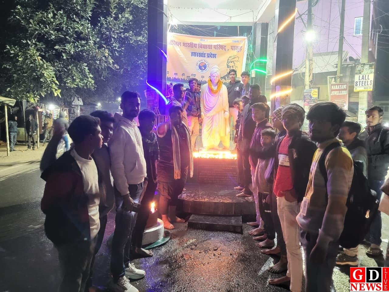 पाकुड़ में अखिल भारतीय विद्यार्थी परिषद (एबीवीपी) नगर इकाई ने शनिवार को स्वामी विवेकानंद की जयंती की पूर्व संध्या पर उनकी प्रतिमा स्थल पर साफ-सफाई
