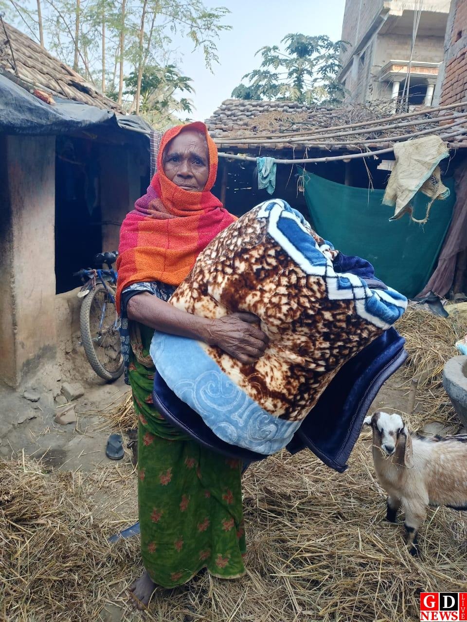 जिप अध्यक्ष जुली हेंब्रम ने ठंड में ग्रामीणों को बांटे कंबल।