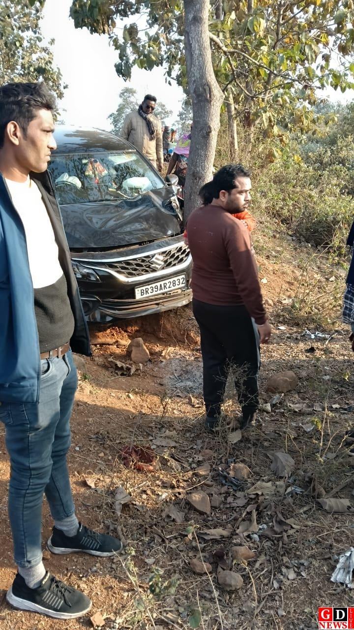 अनियंत्रित कार पेड़ से टकराई, तारापीठ से लौट रहे चार लोग घायल।