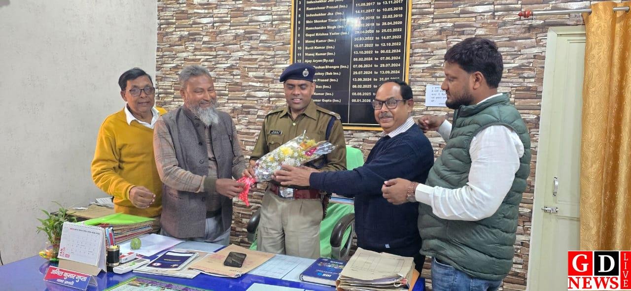 पाकुड़ कांग्रेस जिला अध्यक्ष श्रीकुमार सरकार के नेतृत्व में सोमवार को कांग्रेस के नेताओं व पदाधिकारियों ने नव पदस्थापित पाकुड़ नगर थाना के पुलिस निरीक्षक