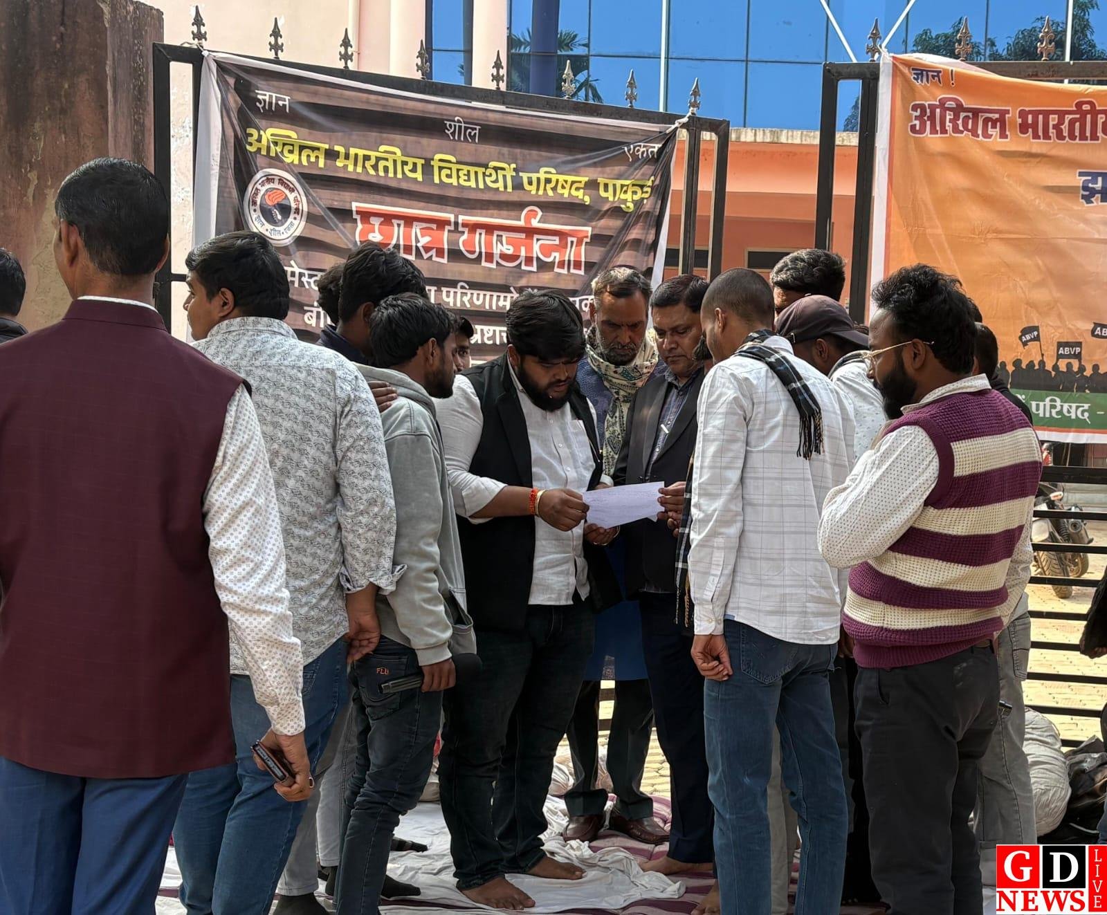 पाकुड़ महाविद्यालय में शैक्षणिक अव्यवस्थाओं और मूलभूत सुविधाओं की कमी को लेकर अखिल भारतीय विद्यार्थी परिषद (ABVP) द्वारा शुरू की गई अनिश्चितकालीन भूख हड़ताल मंगलवार