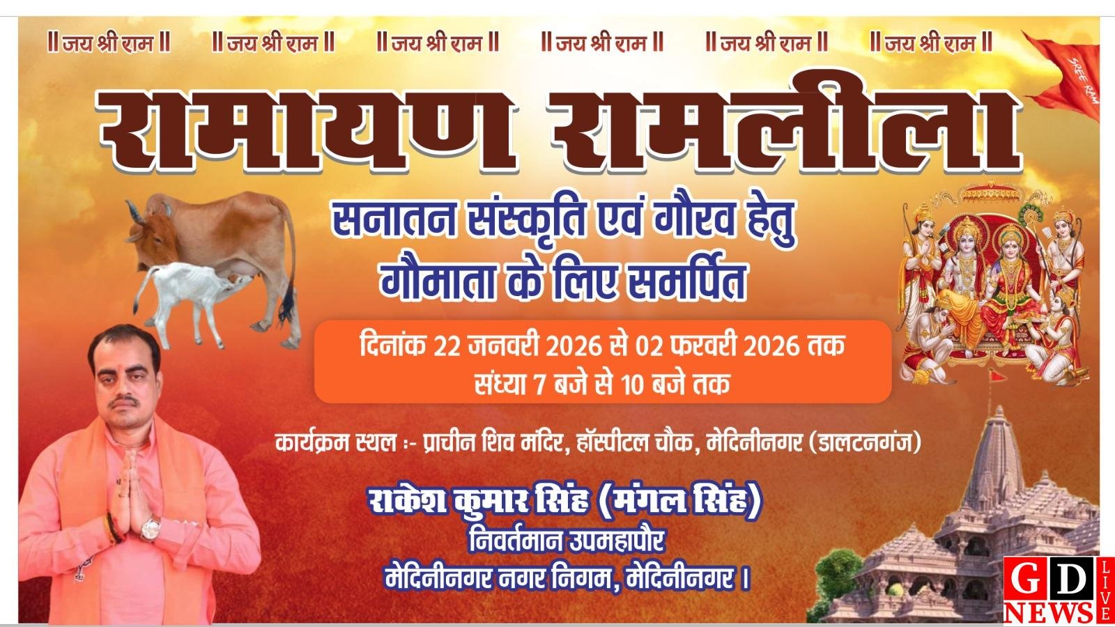 मेदिनीनगर में रामायण रामलीला का भव्य आयोजन, गोमाता संरक्षण को समर्पित होगा कार्यक्रम