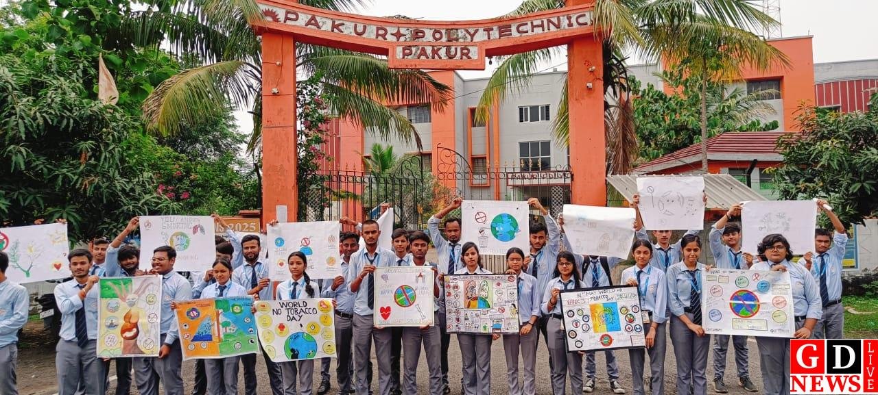 विश्व तंबाकू निषेध दिवस पर पाकुड़ पॉलिटेक्निक के छात्रों ने चलाया जागरूकता अभियान।