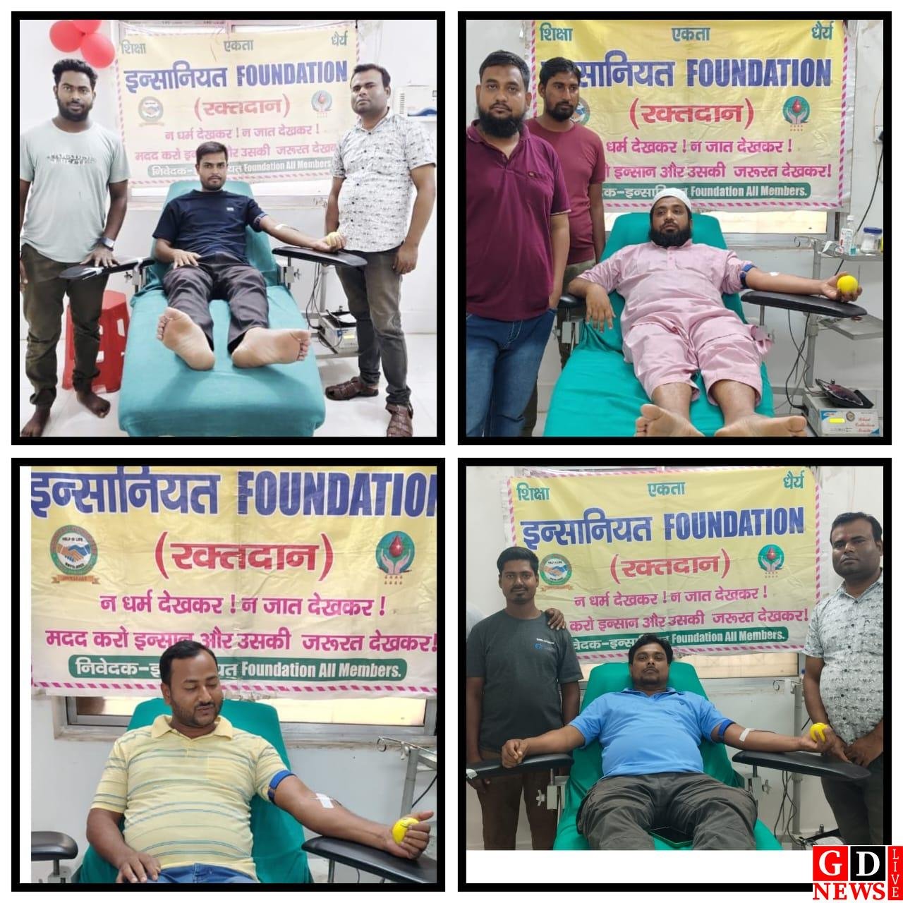 इंसानियत फाउंडेशन ने मानवता का परिचय देते हुए चार सदस्यों ने रक्तदान किया।