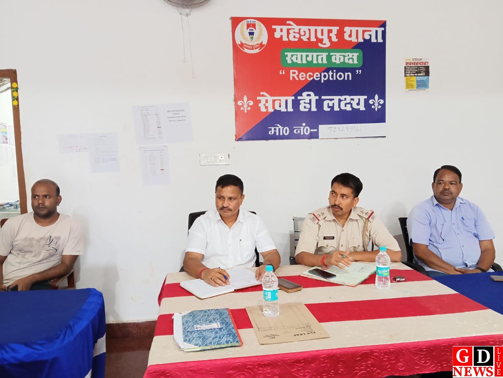 इकबाल हुसैन महेशपुर थाना परिसर में बकरीद को लेकर थाना परिसर में रविवार को शांति समिति की बैठक आयोजित किया गया। आयोजित बैठक की अध्यक्षता