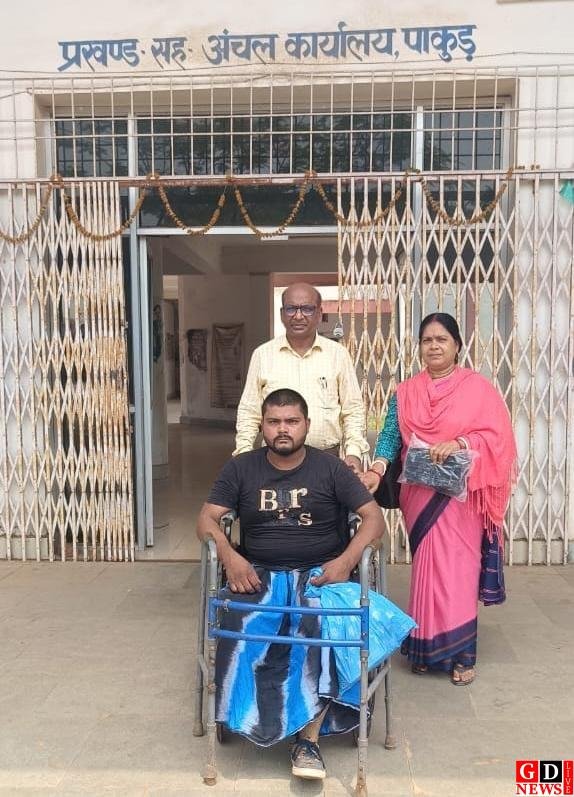 व्हीलचेयर पाकर लाभुक ने सरकार और जिला प्रशासन के प्रति जताया आभार। पाकुड़ प्रखंड में दिव्यांग के बीच व्हीलचेयर का वितरण किया गया। पाकुड़ प्रखंड