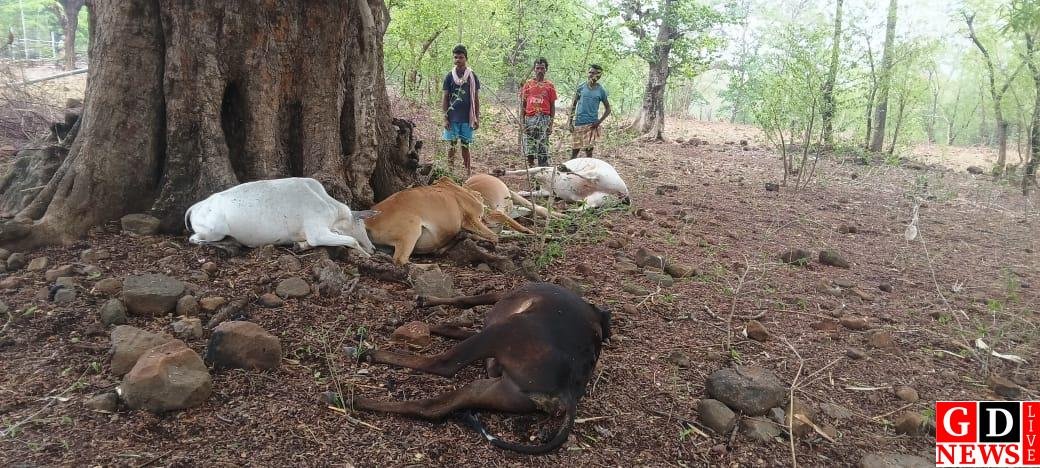 वज्रपात से 5 मवेशियों की मौत, मवेशी मालिकों ने प्रशासन से लगाई मदद की गुहार।