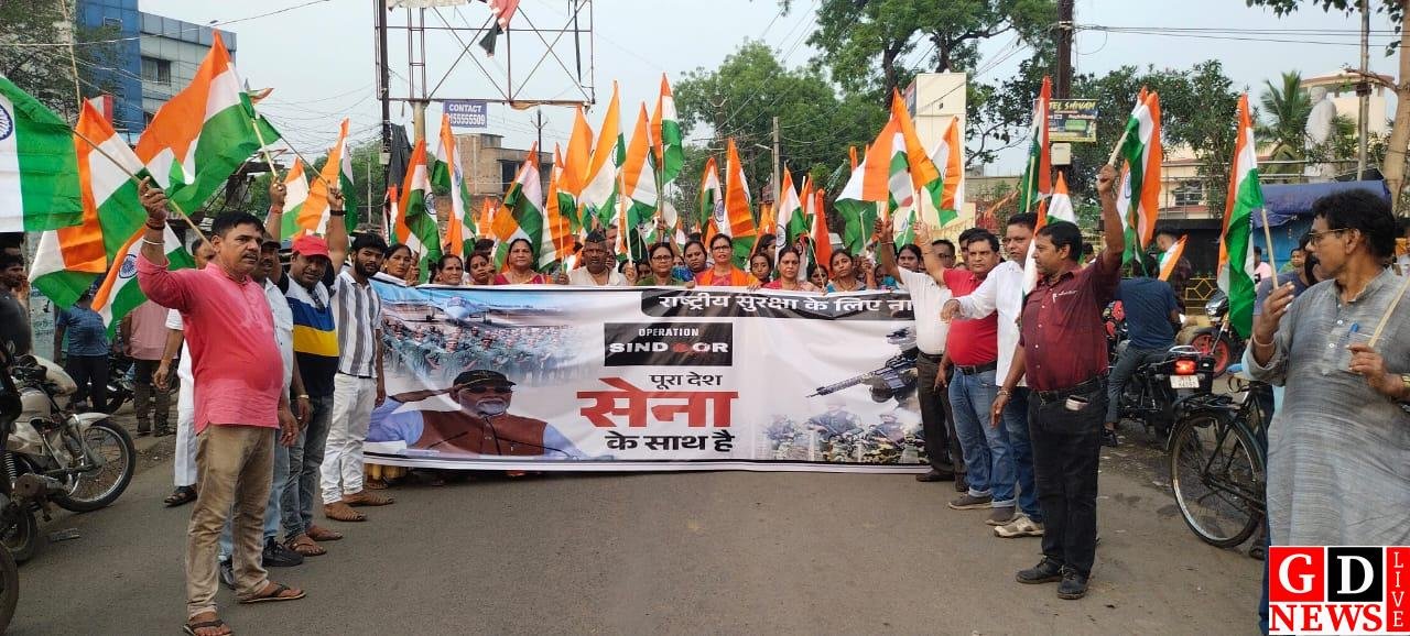 ऑपरेशन सिंदूर की सफलता के जश्न में राष्ट्रीय सुरक्षा के लिए नागरिक के बैनर तले पाकुड़ नगर में रेलवे स्टेशन से सिदो कान्हू पार्क तक