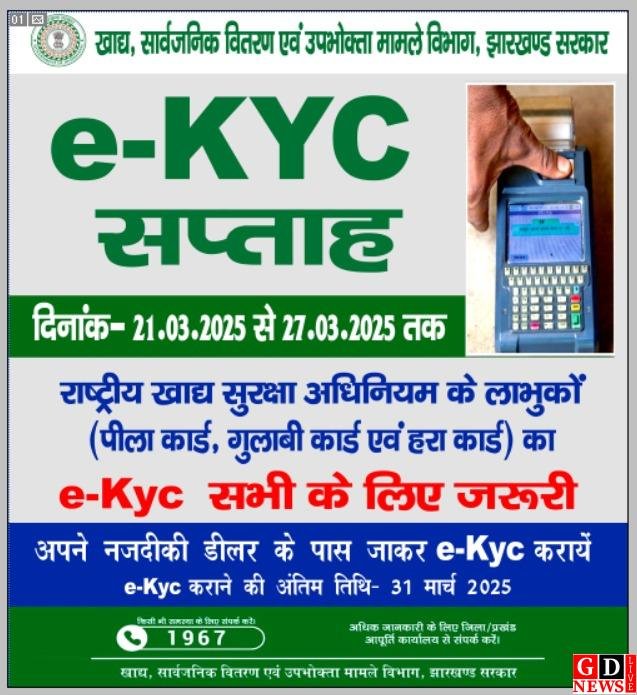 10 दिनों के अंदर लक्ष्य को पूरा करने की कार्य योजना। राहुल दास हिरणपुर (पाकुड़): राशनकार्ड धारकों की ई केवाईसी का कार्य काफी तेजी से