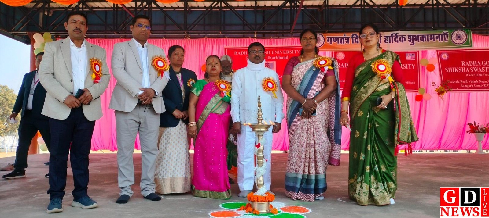 अक्षय कुमार सिंह की रिर्पोट रामगढ़ । राधा गोविंद विश्वविद्यालय प्रांगण में 76वां गणतंत्र दिवस बड़े उत्साह एवं हर्षोल्लास के साथ मनाया गया। कार्यक्रम में