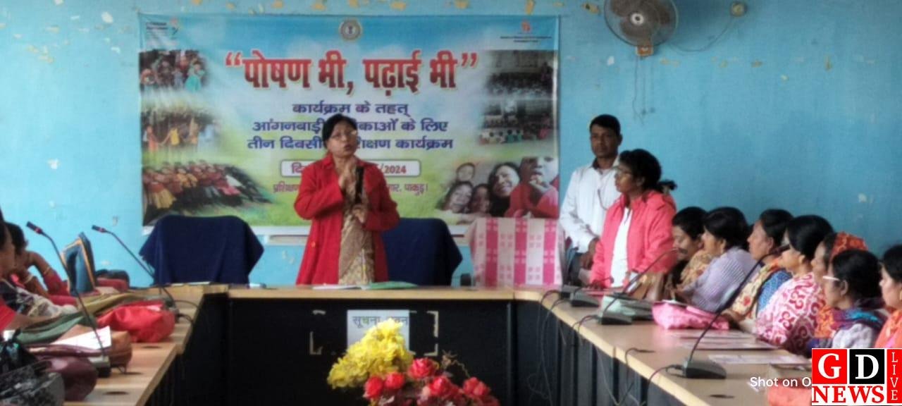 आंगनबाड़ी सेविकाओं के लिए प्रशिक्षण कार्यक्रम आयोजित सतनाम सिंह जिला समाज कल्याण शाखा, पाकुड़ के तत्वाधान में जिला सूचना भवन सभागार, पाकुड़ में “पोषण भी,