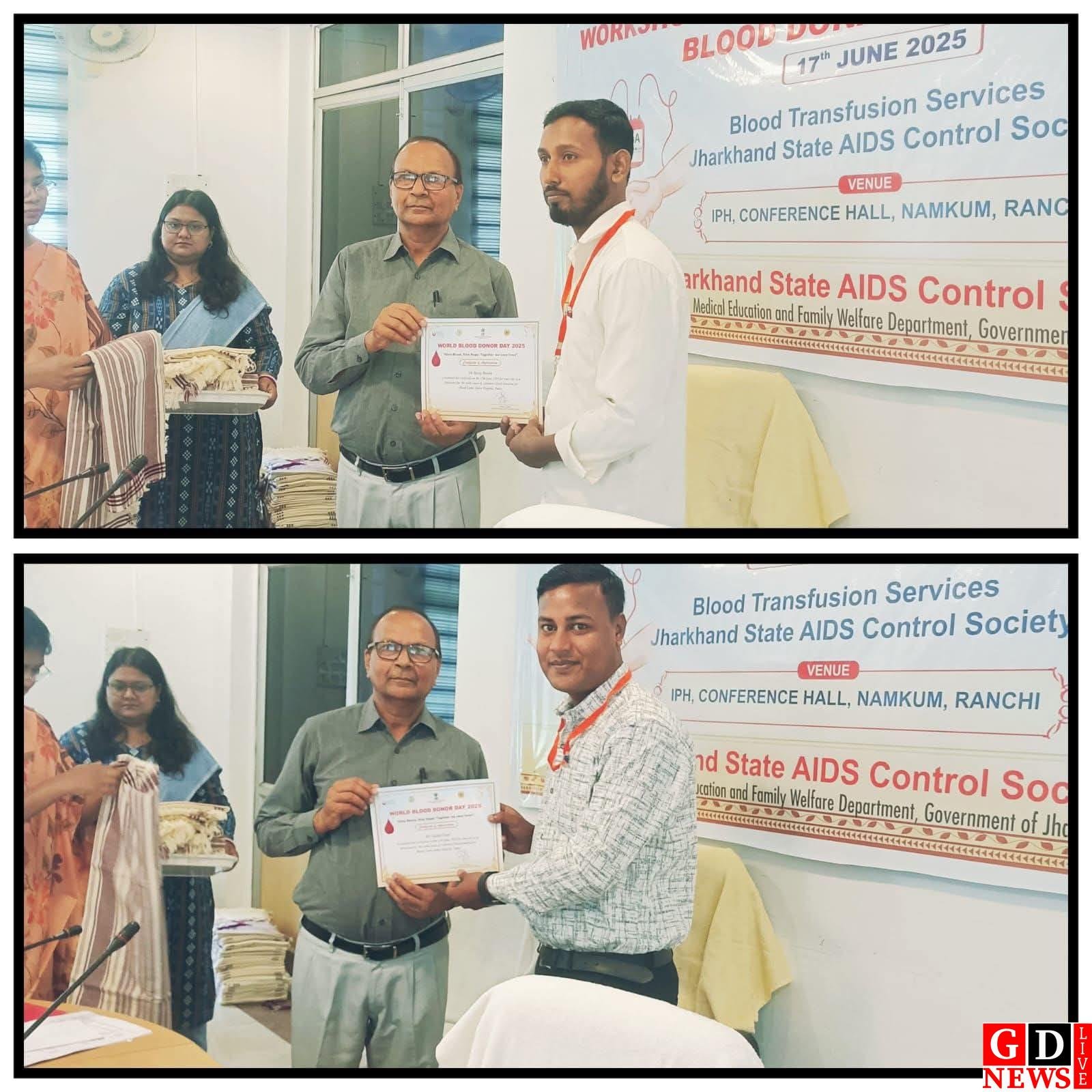 “खून से की इंसानियत की सेवा” — पाकुड़ के दो सपूतों को मिला रांची में सम्मान