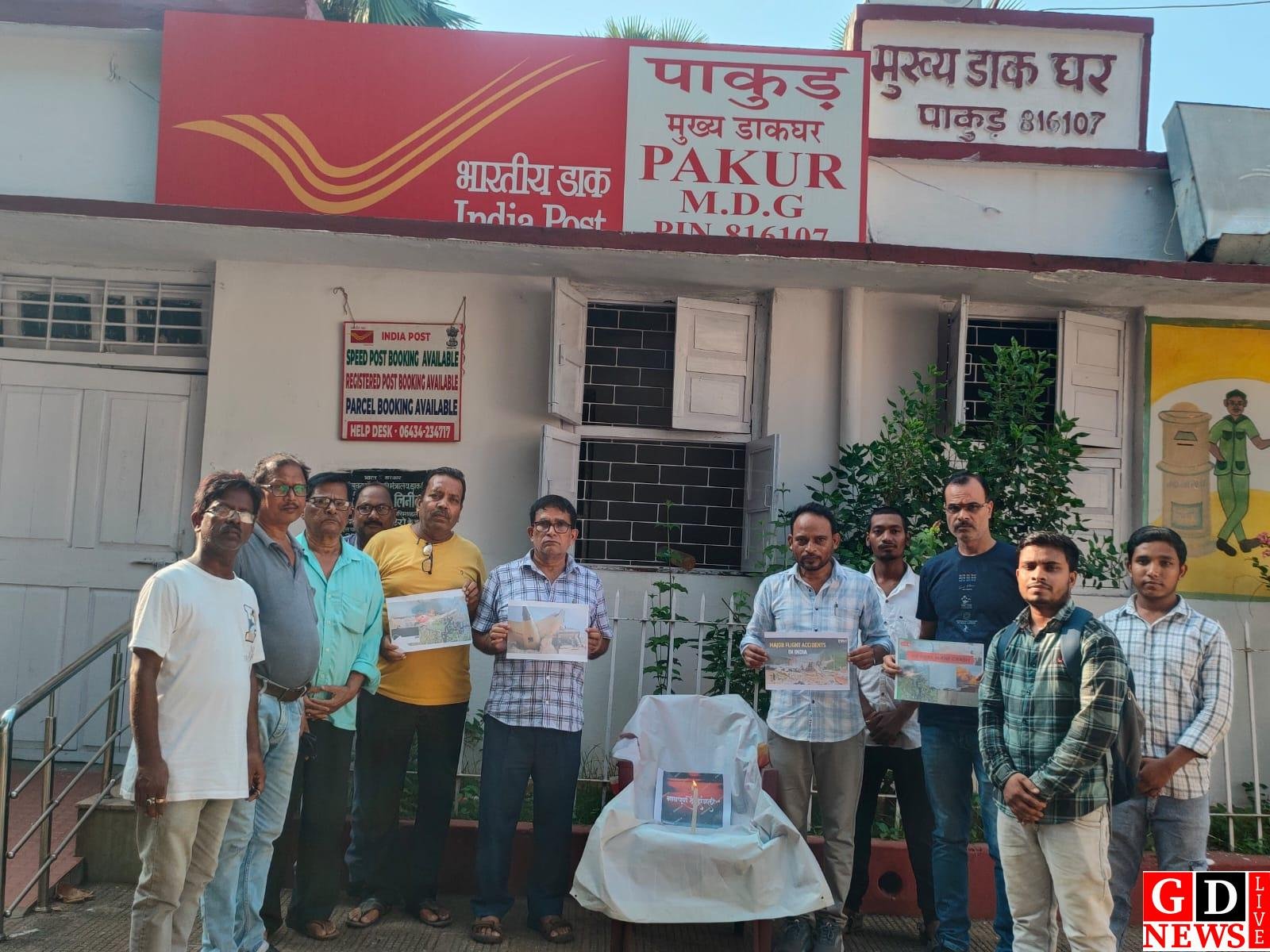 अहमदाबाद विमान हादसे में मृतकों को पाकुड़ डाक विभाग ने दी श्रद्धांजलि