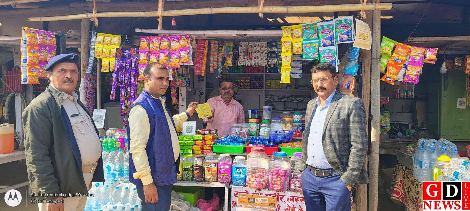 अमड़ापाड़ा में तंबाकू निषेध कार्यक्रम अभियान चलाया गया, 22 दुकानों से 4400 रुपये का वसूला गया जुर्माना।