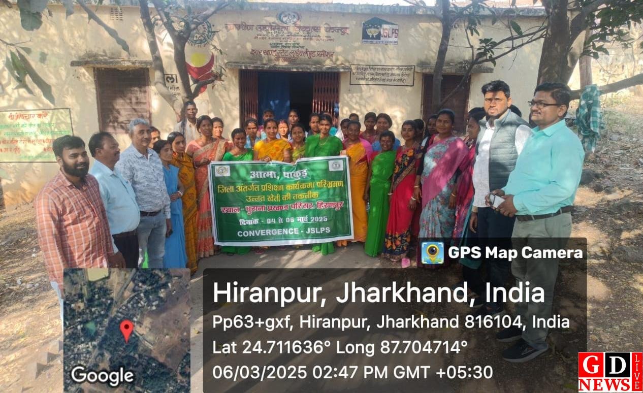 सुस्मित तिवारी हिरणपुर (पाकुड़ )हिरणपुर में किसानों के बीच आत्मा व जेएसएलपीएस के संयुक्त तत्वावधान में आयोजित प्रखंड स्तरीय तीन दिवसीय प्रशिक्षण गुरुवार को जेएसएलपीएस