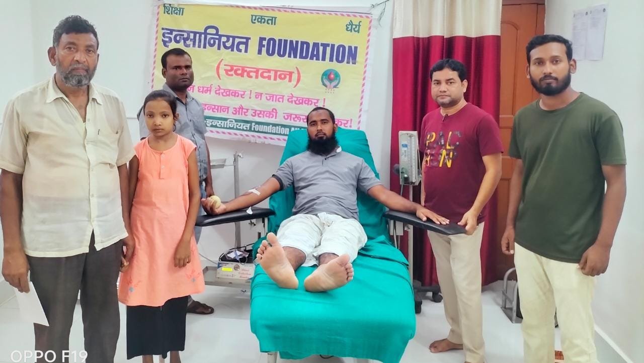 राजकुमार भगत ईसा शेख ने रक्तदान कर बच्ची क़ो दिया जीवनदान इंसानियत फाउंडेशन जिला पाकुड़ मे रक्तदान के मामले मे सबसे आगे है असहाय गरीब