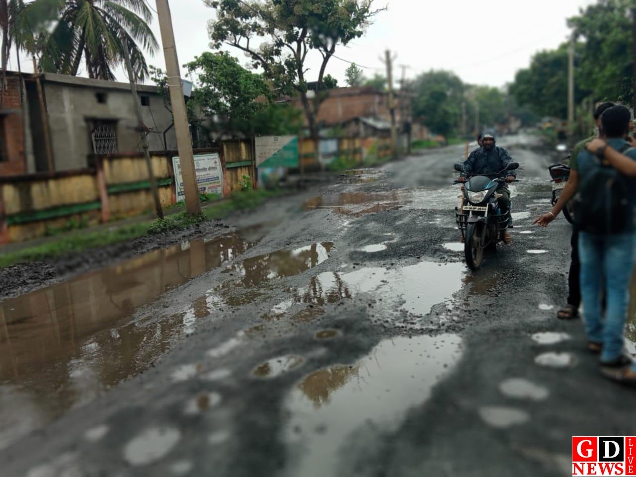 गड्ढों में भरी जिंदगी, नेता नदारद! जनता पूछ रही है — किस मुंह से वोट मांगोगे अगली बार? राहुल दास। हिरणपुर बाज़ार की मुख्य सड़क
