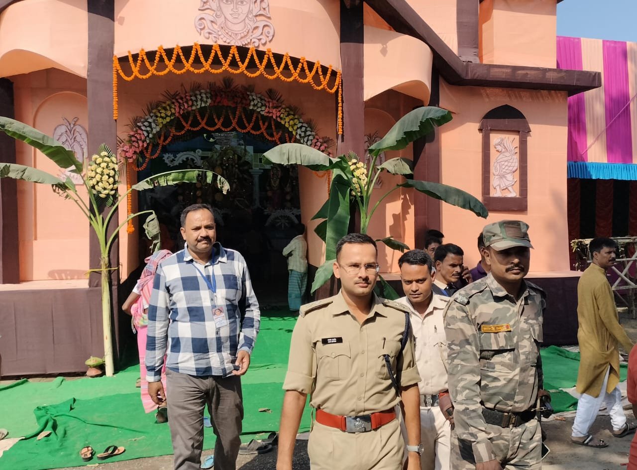 प्रशिक्षु डीएसपी ने महेशपुर क्षेत्र के पूजा पंडालों का किया निरीक्षण।