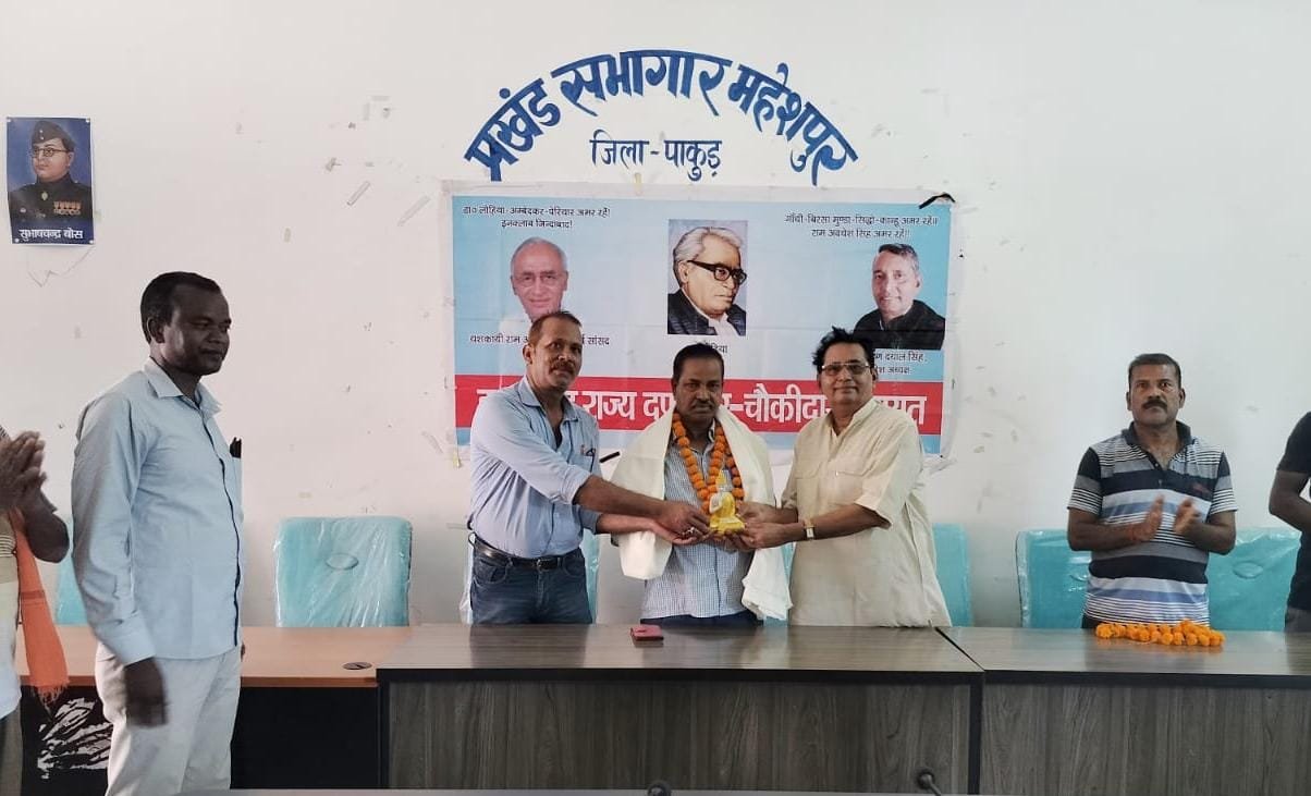 धीरेन साहा झारखंड राज्य दफादार चौकीदार पंचायत की ओर से रविवार को प्रखंड कार्यालय के सभागार में महेशपुर थाने के सेवानिवृत्ति चौकीदार धीरेन माल को