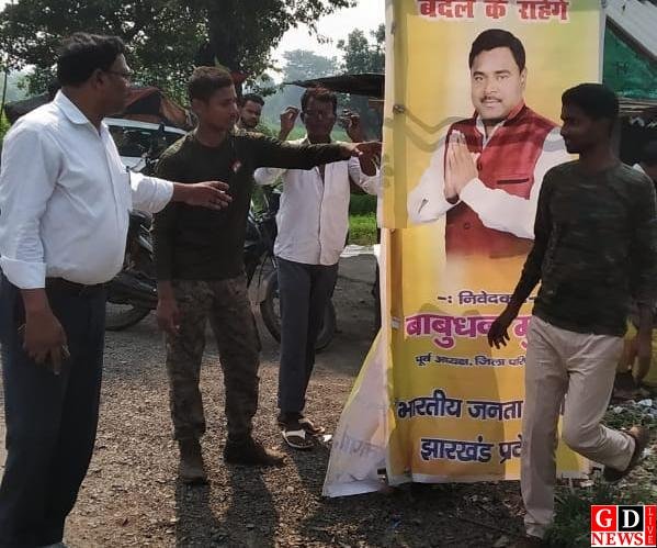 आचार संहिता को लेकर बीडीओ ने राजनैतिक दलों की बैनर पोस्टर को हटाया।