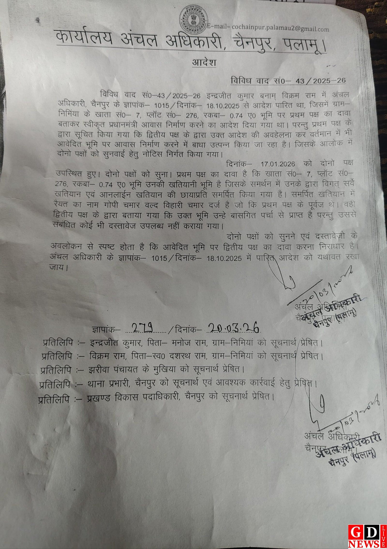 चैनपुर अंचल कार्यालय के आदेश पर पुश्तैनी जमीन में बवाल! 22 डिसमिल जमीन बनी विवाद की जड़