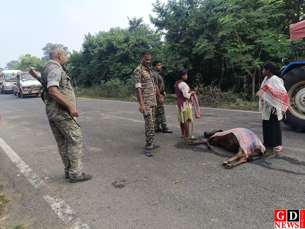 लिट्टीपाड़ा (पाकुड़)। प्रखंड मुख्यालय स्थित स्टेडियम के पास शुक्रवार सुबह तेज रफ्तार अज्ञात वाहन की चपेट में आने से एक मवेशी की मौत हो गई। घटना के बाद आक्रोशित ग्रामीणों ने लिट्टीपाड़ा-हिरणपुर मुख्य सड़क को करीब दो घंटे तक जाम कर दिया। ग्रामीणों ने मवेशी के मालिक को मुआवजा देने और स्टेडियम के पास स्पीड ब्रेकर बनाने की मांग की।