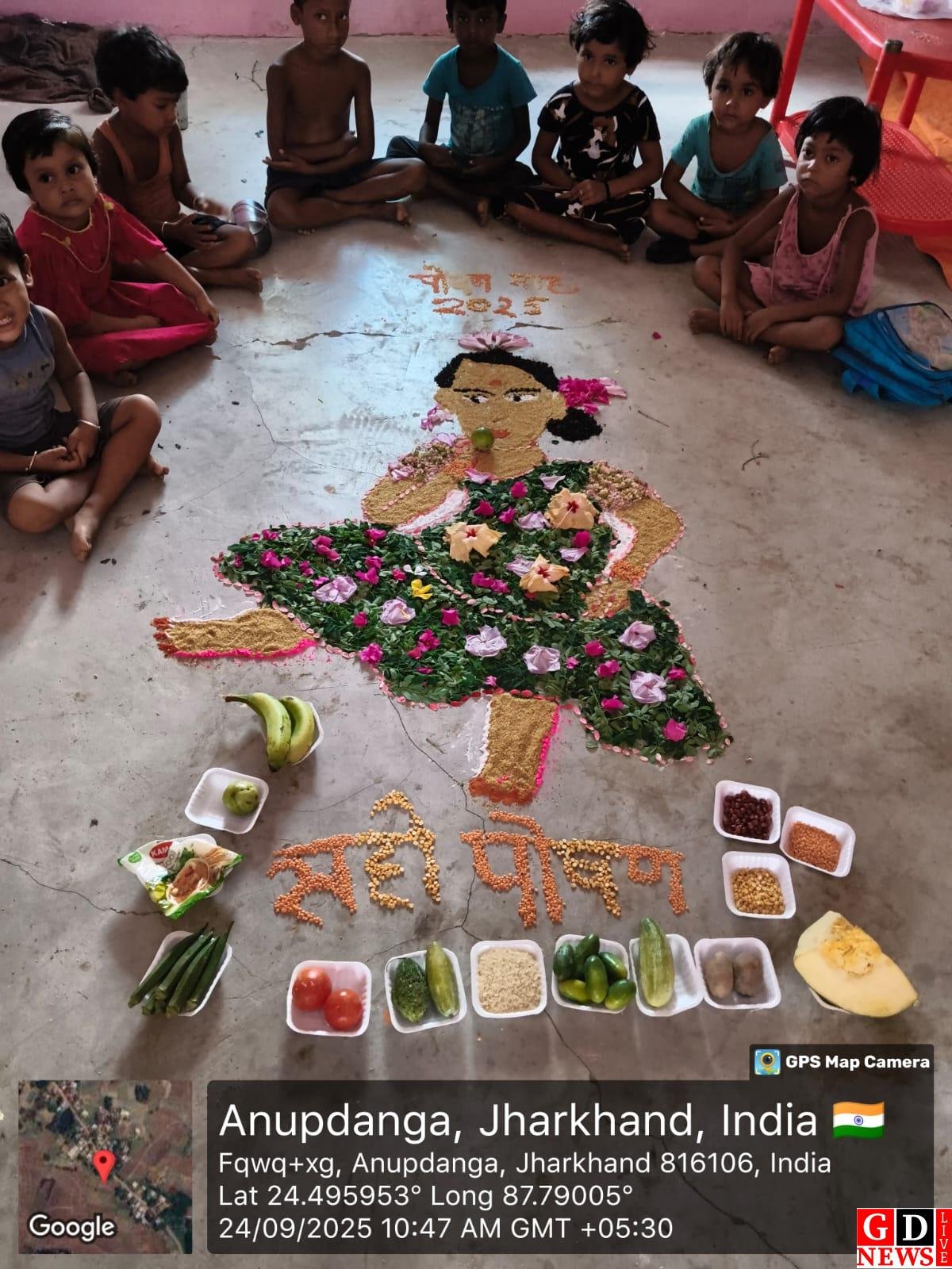 पाकुड़ | राष्ट्रीय पोषण माह 2025 के तहत जिले के सभी आंगनबाड़ी केंद्रों में बुधवार को विशेष गतिविधियाँ हुईं। बच्चों ने प्रार्थना और योगा से दिन की शुरुआत की, वहीं सेविकाओं ने “सही पोषण-देश रोशन” संदेश के साथ फूल, पत्ते और सब्जियों से रंगोली बनाई। बच्चों को भी इसमें शामिल कर उनकी रचनात्मकता को बढ़ावा दिया गया। स्थानीय भोजन और उत्पादन के महत्व को समझाने के लिए रंगोलियों में स्थानीय खानपान सामग्री का उपयोग किया गया। साथ ही बच्चों को आदि कर्मयोगी अभियान से भी अवगत कराया गया।