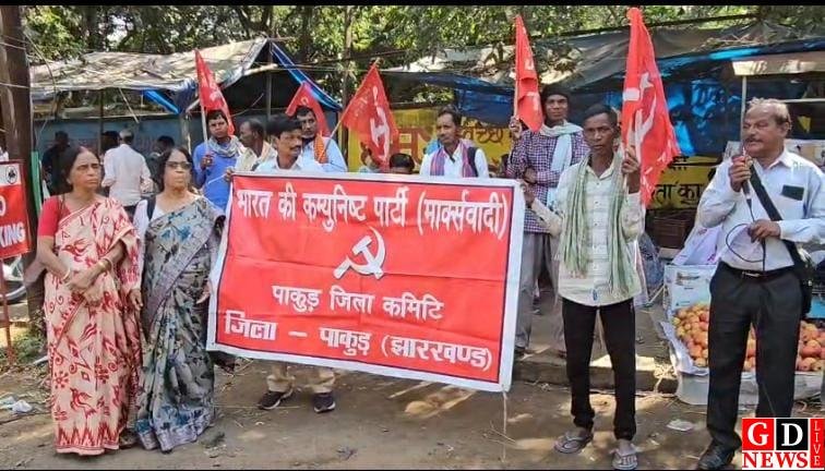 पाकुड़: भारत की कम्युनिस्ट पार्टी (मार्क्सवादी) पाकुड़ जिला कमेटी ने शनिवार को अनुमंडल कार्यालय के समीप जोरदार धरना प्रदर्शन किया। पार्टी कार्यकर्ताओं ने सरकार की जनविरोधी नीतियों और किसानों की उपेक्षा के खिलाफ नारेबाजी की।धरना का नेतृत्व जिला सचिव गोपिन सोरेन और नादिर हुसैन ने किया। कार्यक्रम के दौरान कार्यकर्ताओं ने अनुमंडल पदाधिकारी को 9 सूत्री मांग पत्र सौंपा।मांग पत्र में प्रमुख रूप से धान क्रय केंद्रों को चालू करने, किसानों को नगद भुगतान की व्यवस्था, खाद-बीज व दवाओं की समय पर उपलब्धता, दाखिल-खारिज में धांधली पर रोक, ऑफलाइन आवेदन की सुविधा, किसानों के कर्ज माफी, बिजली आपूर्ति में सुधार, विधवा पेंशन व सामाजिक सुरक्षा योजना का लाभ, पंचायत स्तर पर सिंचाई हेतु डीप बोरिंग की व्यवस्था और अस्पतालों में डॉक्टर व दवाओं की उपलब्धता सुनिश्चित करने की मांग की गई।नेताओं ने चेतावनी दी कि अगर मांगों पर शीघ्र कार्रवाई नहीं की गई तो आंदोलन को और तेज किया जाएगा।