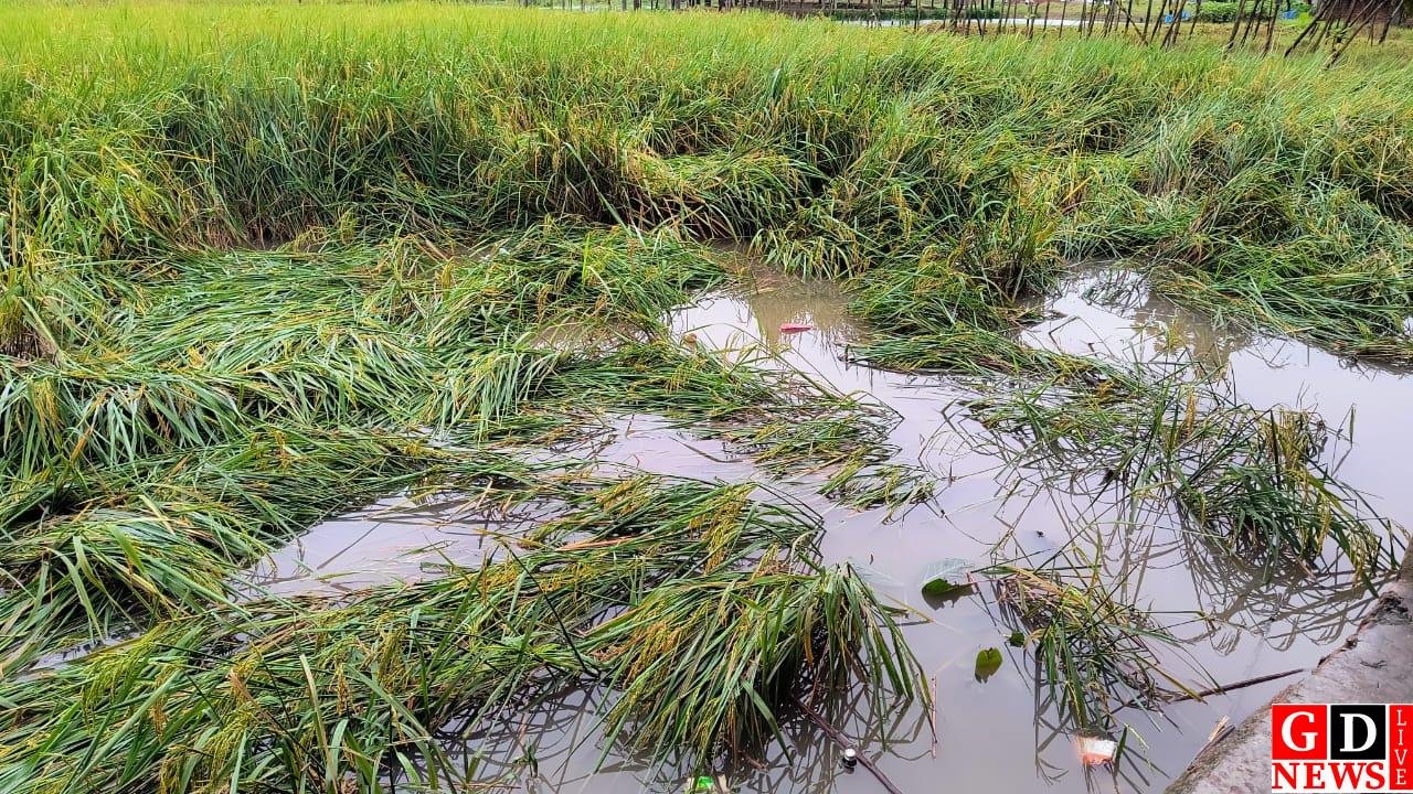 पाकुड़ जिले में शुक्रवार शाम चक्रवाती तूफान मोथा का असर देखने को मिला। शाम होते-होते आसमान में काले बादल छा गए और तेज हवाओं के साथ शुरू हुई मूसलाधार बारिश ने किसानों की सारी मेहनत पर पानी फेर दिया। खेतों में लहलहाती धान की फसलें देखते ही देखते जमीन पर बिछ गईं। दो दिन से तूफान का असर दिख रहा था, लेकिन शुक्रवार शाम इसका प्रकोप और तेज हो गया। झोंकेदार हवाएं और लगातार घंटों तक हुई बारिश ने जिले के अधिकांश खेतों में खड़ी फसलों को चौपट कर दिया। किसानों के मुताबिक, धान में अभी बालियां आई ही थीं, फसल पकने को थी, तभी तूफान ने सबकुछ उजाड़ दिया। धान के साथ-साथ मसूर, खेसारी, चना और आलू जैसी रबी फसलें भी इस तबाही की चपेट में आ गईं। खेतों में पानी भर जाने से फसलों के सड़ने का खतरा भी बढ़ गया है। किसानों का कहना है कि अब अच्छी पैदावार की उम्मीद लगभग खत्म हो गई है। तूफान मोथा ने न सिर्फ फसलों को नुकसान पहुंचाया, बल्कि ग्रामीण इलाकों में कई पेड़ गिर गए और बिजली आपूर्ति भी घंटों बाधित रही। प्रशासन ने नुकसान का आकलन कराने के निर्देश दिए हैं, वहीं किसान अब सरकार से मुआवजे की उम्मीद लगाए बैठे हैं। धान की फसल पर बालियां आई थीं, बस कटाई का इंतजार था, लेकिन मोथा ने सब बर्बाद कर दिया।