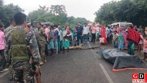 सड़क निर्माण में मनमाने भूमि अधिग्रहण के विरोध में रैयतों का हंगामा, घंटों जाम रहा पाकुड़-दुमका मार्ग।