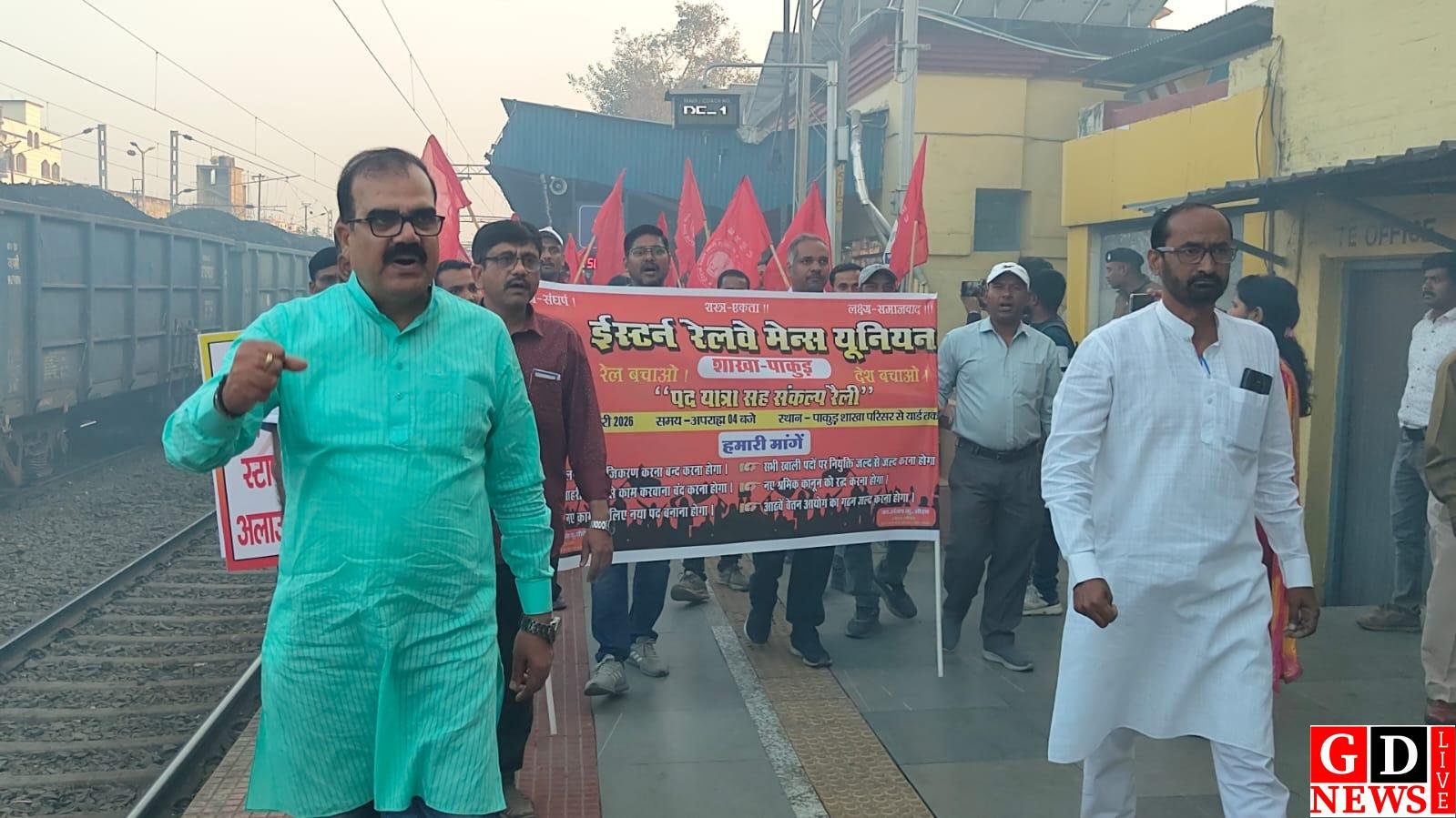 पाकुड़। ऑल इंडिया रेलवे मेंस फेडरेशन के तत्वावधान में ईस्टर्न रेलवे मेंस यूनियन कोलकाता के बैनर तले ईस्टर्न रेलवे मेंस यूनियन, पाकुड़ शाखा द्वारा जागरूकता सह संकल्प रैली का आयोजन किया गया। रैली की अगुवाई शाखा अध्यक्ष कॉमरेड अखिलेश चौबे ने की। शाम 4 बजे यूनियन कार्यालय से निकली पदयात्रा प्लेटफॉर्म संख्या-1 से होते हुए पाकुड़ यार्ड पहुंची, जहां कर्मचारियों को संबोधित करने के बाद रैली का समापन हुआ। सभा को संबोधित करते हुए शाखा सचिव संजय कुमार ओझा ने कहा कि पाकुड़ में रेलवे कर्मचारियों की सुविधाओं को लेकर किए गए अधिकांश वादे पूरे किए जा चुके हैं, जबकि शेष कार्य मार्च तक पूरा करने की योजना है। उन्होंने गंभीर चिंता जताते हुए कहा कि विभिन्न विभागों में भारी स्टाफ कमी के कारण कर्मचारियों पर काम का अत्यधिक दबाव है, जिससे कार्य गुणवत्ता प्रभावित होने का खतरा बना रहता है। यूनियन ने मांग की कि कर्मचारियों की कमी दूर की जाए और कार्य पूरा करने के लिए यथोचित समयसीमा दी जाए। ओझा ने ओपन लाइन में कार्यरत पर्यवेक्षकों की स्थिति पर भी प्रकाश डाला। उन्होंने बताया कि निरंतर दबाव और 24 घंटे की जिम्मेदारियों के चलते लगभग 80 प्रतिशत सुपरवाइजर उच्च रक्तचाप, मधुमेह और हृदय रोग से ग्रसित पाए गए हैं। यूनियन ने प्रशासन से मांग की कि इस संवर्ग को प्रतिदिन कम से कम 6–8 घंटे की निर्बाध नींद का अवकाश सुनिश्चित किया जाए, ताकि कार्य गुणवत्ता बनी रहे।