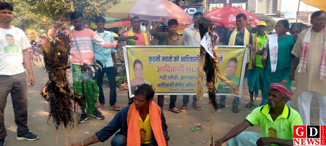 महेशपुर (पाकुड़): कुरमी समाज को आदिवासी सूची में शामिल करने के विरोध में शनिवार को महेशपुर के अंबेडकर चौक पर आदिवासी सेंगेल अभियान ने जोरदार प्रदर्शन किया। इस दौरान मुख्यमंत्री हेमंत सोरेन समेत 28 आदिवासी विधायकों और 5 आदिवासी सांसदों का पुतला दहन किया गया।