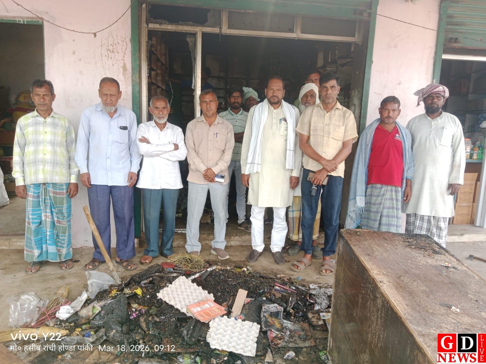 पांकी पलामू -पांकी प्रखंड के पंचायत माड़न भंडार चौक स्थित पप्पू जेनरल किराना स्टोर में रात्रि लगभग 9:30 में सौर्ट सर्किट से आग लगने पर लाखों की सम्पत्ति एवं महाजन के लिए रखें 45000 रुपये जलकर खाक हो गई थी