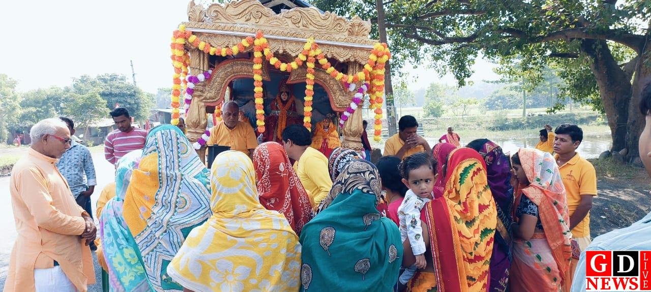 रविवार रात रथ का ठहराव बाबुधन के आवास पर किया गया। सोमवार सुबह रथ नगर भ्रमण के लिए रवाना हुआ तो श्रद्धालुओं की भीड़ सड़कों पर उमड़ पड़ी। बर्हिग्राम, झिकरहाटी, किस्मत कदमसार होते हुए रथ श्यामनगर दुर्गा मंदिर पहुंचा, जहां दीप यज्ञ और सामूहिक आरती के साथ कार्यक्रम संपन्न हुआ। कार्यक्रम के तहत मंगलवार को रथ रेलवे कॉलोनी की ओर रवाना होगा। दोपहर में तलवाडांगा में विश्राम रहेगा, जबकि शाम को खदान पाड़ा और दुर्गा कॉलोनी होते हुए रथ फिर बाबुधन आवास लौटेगा। बुधवार सुबह छोटी अलीगंज में होमियो क्लिनिक के पास भजन-कीर्तन का आयोजन होगा। गुरुवार को मिलन मंदिर, तांती पाड़ा और पुलिस लाइन होते हुए रथ साहिबगंज कोटालपोखर के लिए प्रस्थान करेगा। रथ यात्रा के दौरान पुलिस प्रशासन की सतर्क निगरानी रही। कार्यक्रम में मुख्य प्रबंध ट्रस्टी जनार्दन ठाकुर, मनोज कुमार गुप्ता, जिला समन्वयक पंकज वर्मा, अम्लान कुमार मिश्रा, कृष्ण भगत, डॉ. अशोक सिंह, लखीराम, बबीता मंडल, कृष्णा तिवारी, पिंकी मंडल, ममता जायसवाल समेत बड़ी संख्या में श्रद्धालु मौजूद रहे।